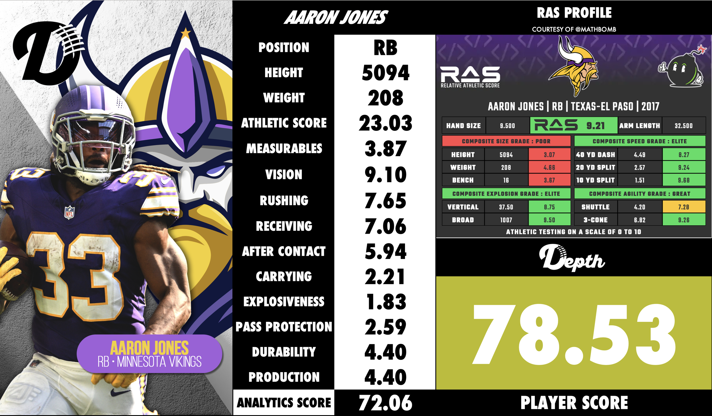Jones is best suited for offenses that utilize a dynamic, versatile back who can run, catch, and create in space rather than purely carry a power-load of 300+ touches. For the Vikings, his skill set fits as a lead back who can exploit mismatches, mix in the passing game, and get creative snaps—not just a pure every-down grinder. Looking ahead: If Jones remains healthy, controls his touch volume smartly, and continues to be efficient, he can remain a high-impact back for a few more seasons. However, if the workload climbs too much or the offensive line/regime changes suboptimally for him, the typical RB decline curve may accelerate.