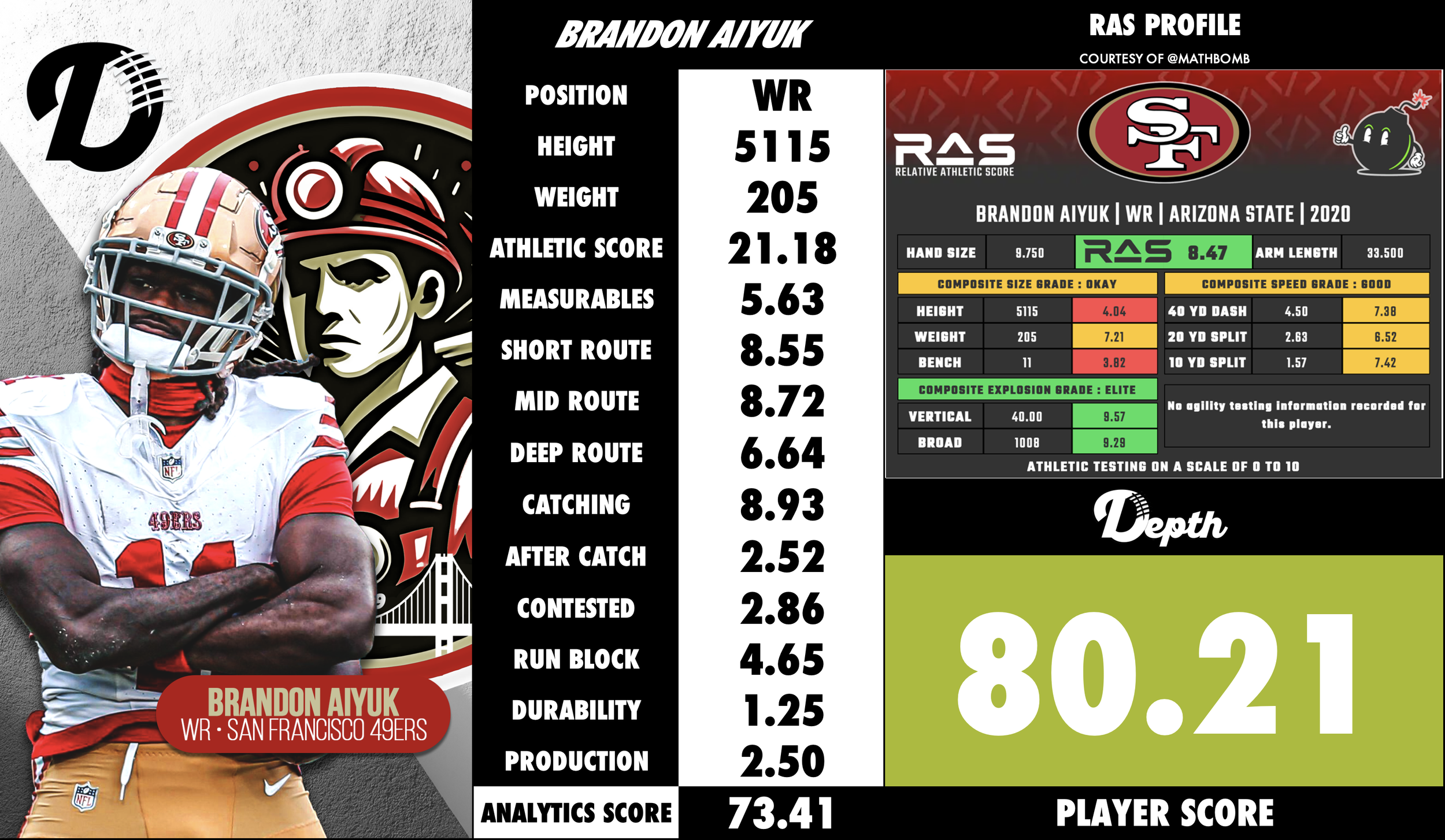 Explosive athlete & YAC (yards after catch) ability: Aiyuk has shown a knack for making big plays once he has the ball in his hands. His open-field vision, ability to change direction and create yards after catch stand out. Bleacher Report