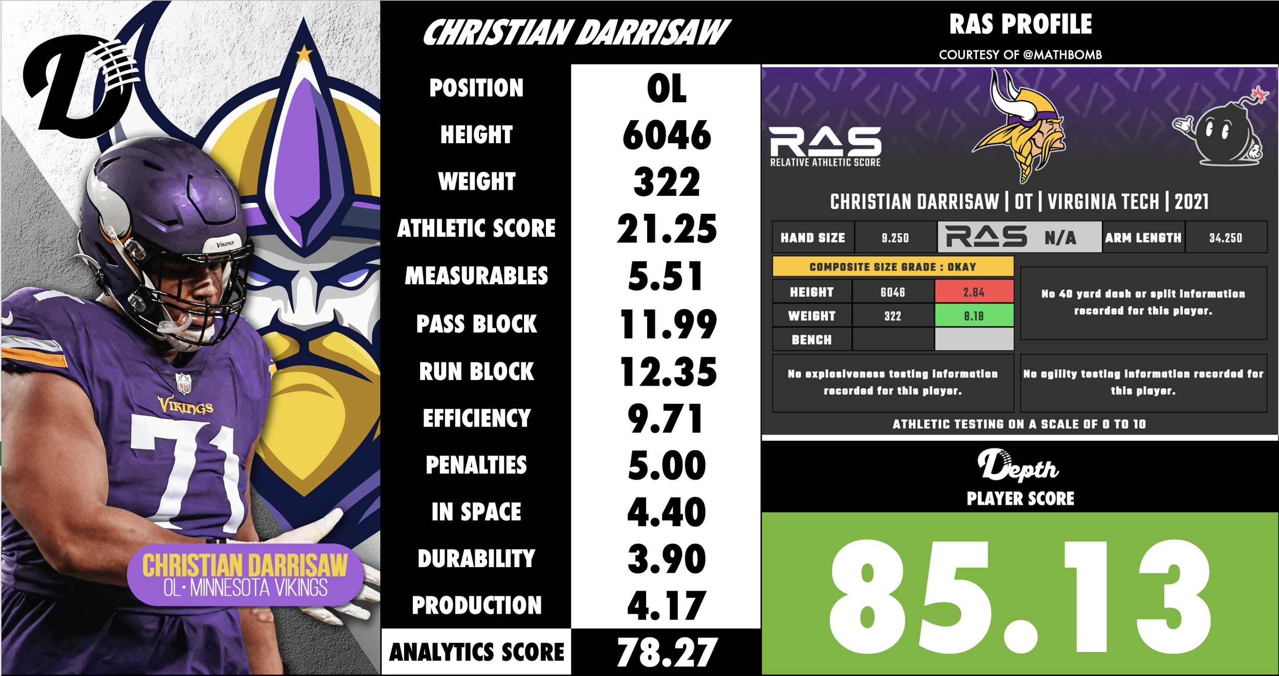 Christian Darrisaw comes with a strong set of traits that make him one of the more promising young offensive tackles in the league: