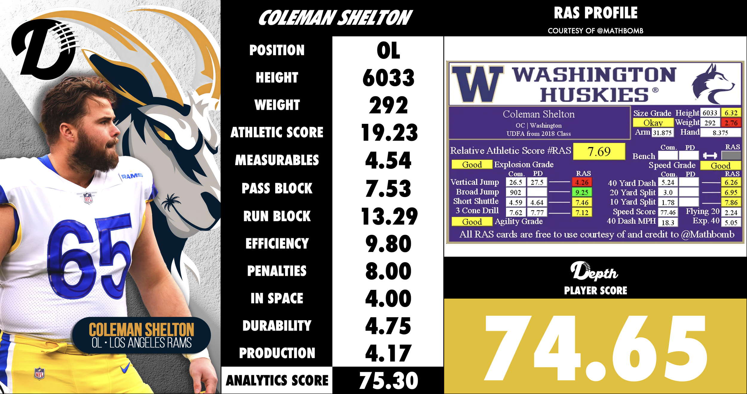 Coleman Shelton went undrafted in the 2018 Class out of University of Washington. Shelton entered the NFL as a highly‑versatile interior offensive line prospect who had started at multiple positions (tackle, guard and center) for UW. He stood out for his athletic movement, footwork, and ability to climb to the second level, traits that made him an intriguing free‑agent pickup despite going undrafted. Over time, the lefty center developed into a reliable starting center in the NFL, grading out respectably via analytics and earning starting opportunities. While he may not have been viewed as a “power anchor” at the point of attack initially, his technical ability and versatility improved his value. The fit & outlook for Shelton centers on how his traits gel with a scheme that values movement, intelligence, and interior cohesion over brute‑force power..