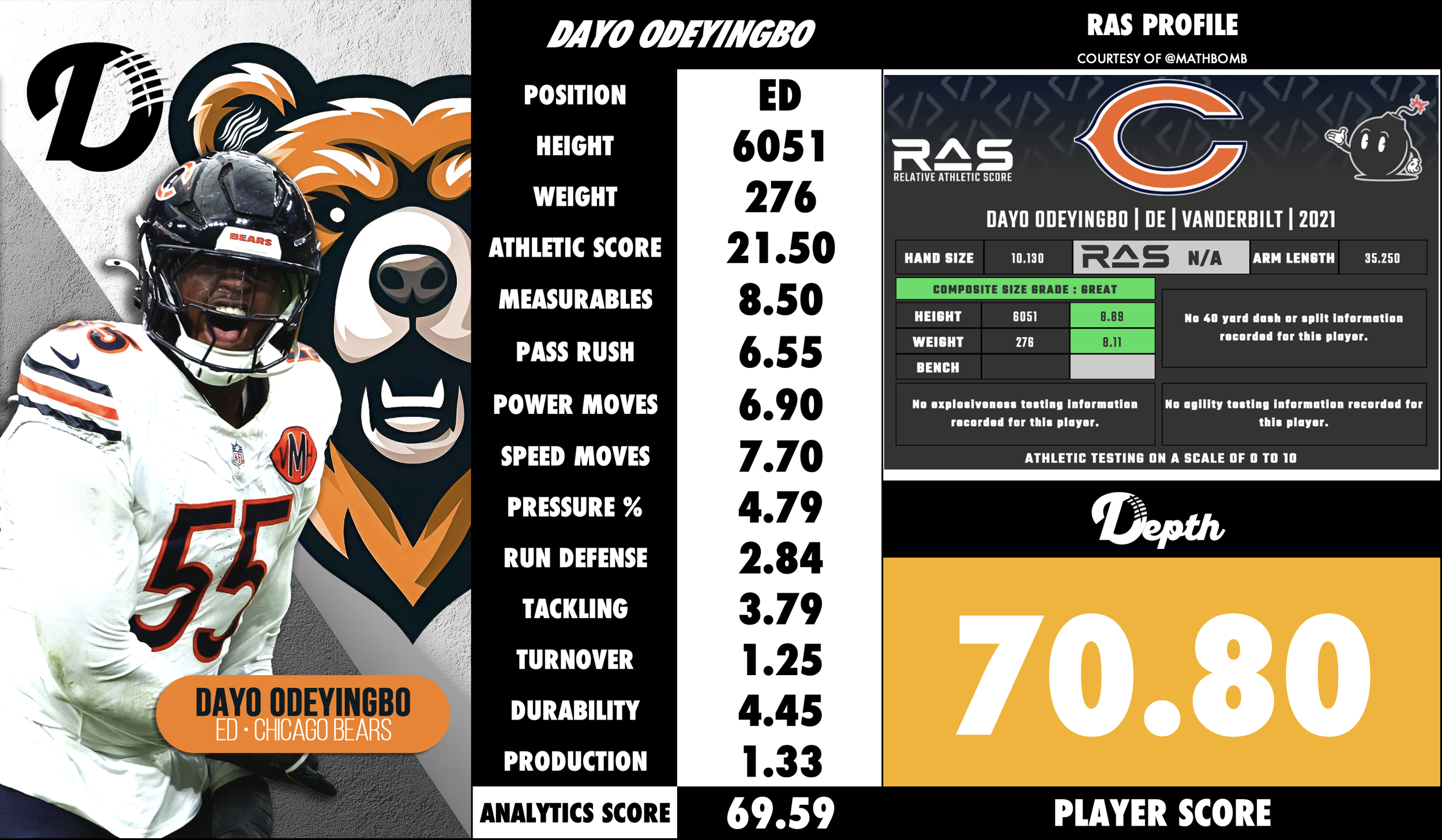 Dayo Odeyingbo is a defensive end/edge rusher who was selected in the 2nd round (54th overall) of the 2021 NFL Draft by the Indianapolis Colts after playing college football at Vanderbilt Commodores. Colts