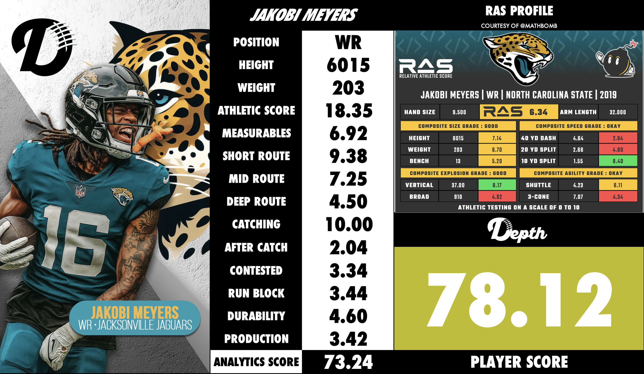 Meyers fits particularly well as a slot or possession-type WR, or a receiver who operates in the short to intermediate range, uses savvy route-running to find openings, and helps sustain drives.