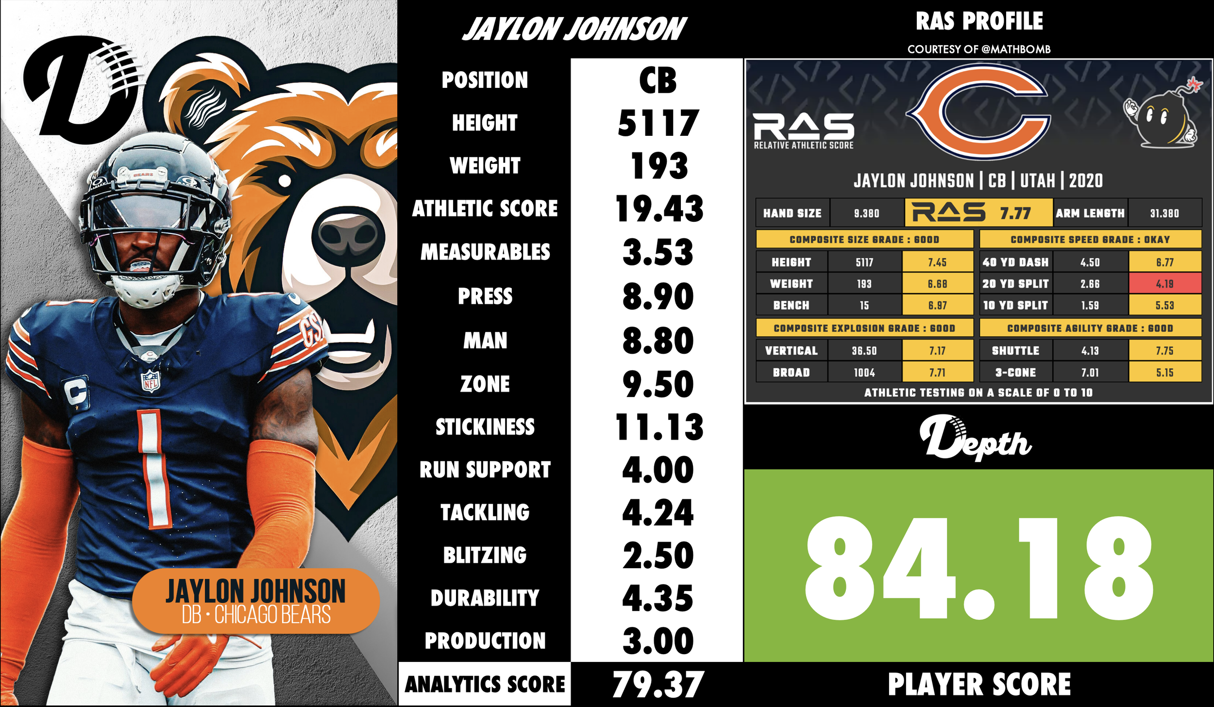 Physicality & tackling in coverage: He combines good size and strength for the outside corner spot, which allows him to engage receivers, fight through blocks, and make tackles. Chicago Bears