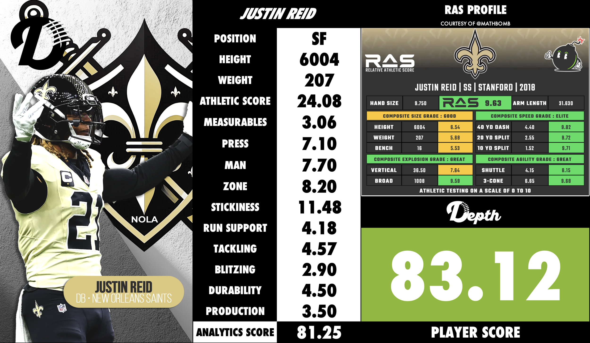 Agile cover‑versatility: Reid shows fluid movement in coverage and is capable of lining up in different roles, including slot or deep‑half. Bleacher Report