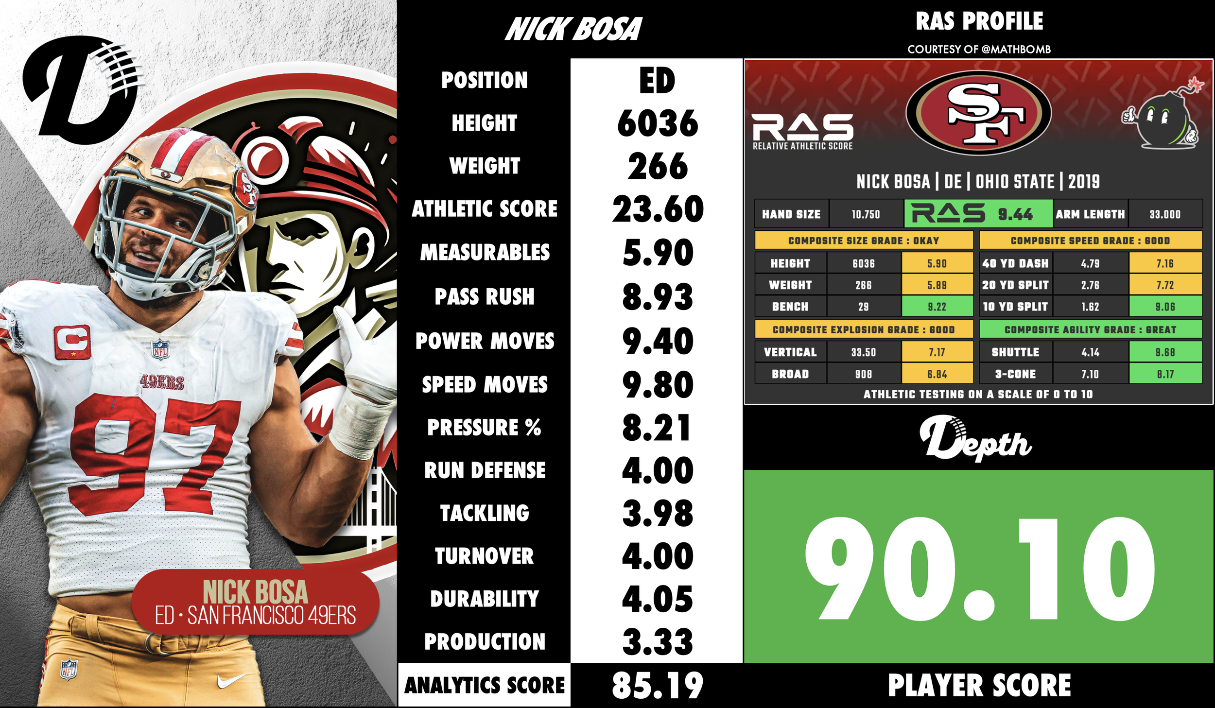 It’s not just sacks: Bosa has shown he can defend the run, chase down plays, handle stunts and twists, and be a three-down player. Niners Nation