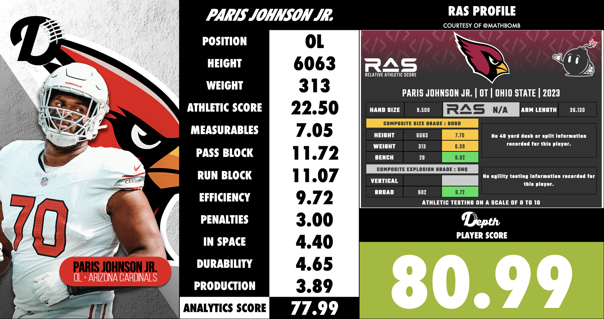 Mental reps / penalty awareness — like many young linemen, can be prone to occasional mental mistakes or pre-snap penalties as he solidifies NFL game speed processing. Arizona Cardinals