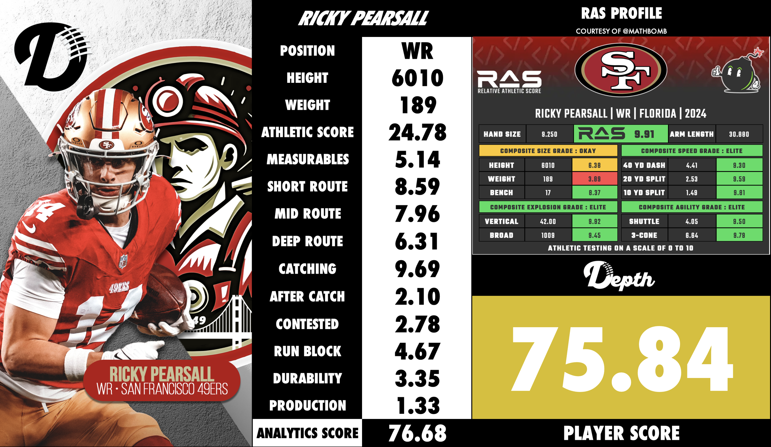 Route Running: Pearsall is a precise and detailed route runner, particularly effective on deeper routes. He utilizes head fakes and body positioning to set up defenders, demonstrating a strong understanding of defensive leverage. Bleacher Report