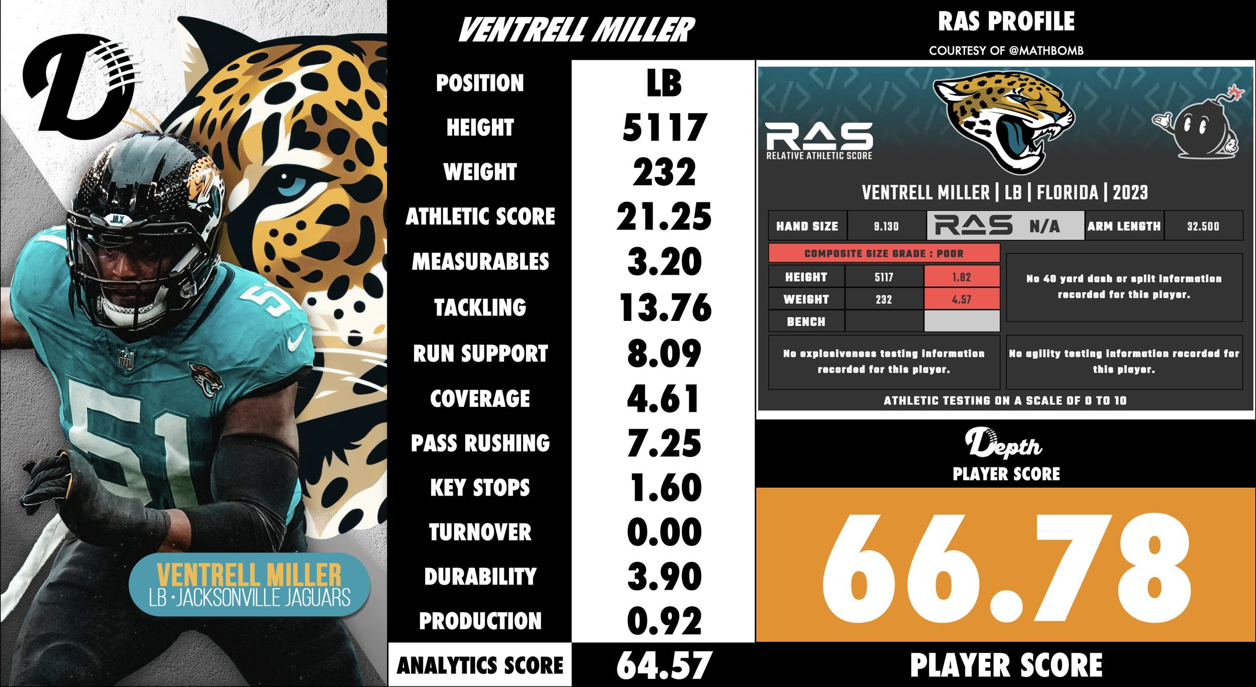 Sideline-to-sideline pursuit & range for his size: While not elite in every athletic metric, Miller has enough lateral mobility to get on the move, defend screens or tosses, and make tackles in space. FantasyPros